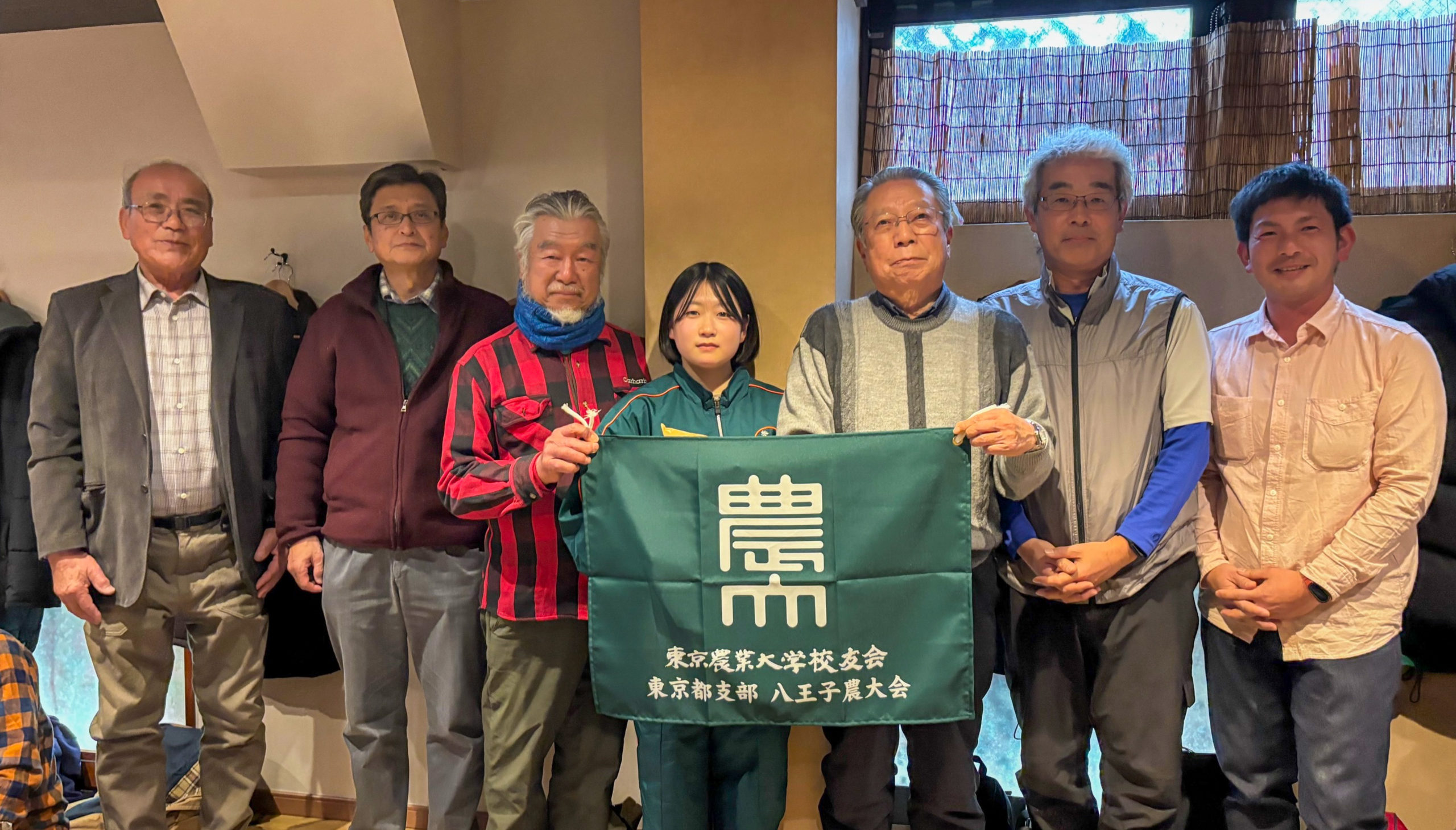 さらにこのたび、校友会副会長 小野甲二様より「八王子農大会」の旗を寄贈いただきました。新たな旗のもと、八王子における農大の輪をより一層広げていきたいと思います。