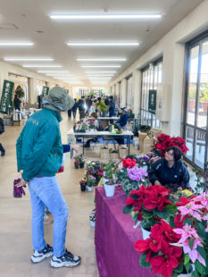 これは、支部会員の交流と校友の活躍を広く地域の方に知っていただくことを目的にしており、コロナ前からの企画がやっと実現しました。この催しは初めての取り組みであったので予定よりは出店が少なかったのですが、植木、草花、イチゴ、スイーツ、レンコン、羊羹や各種加工品の販売で賑わいました。また、日本酒や味噌の試食販売も人気がありました。
