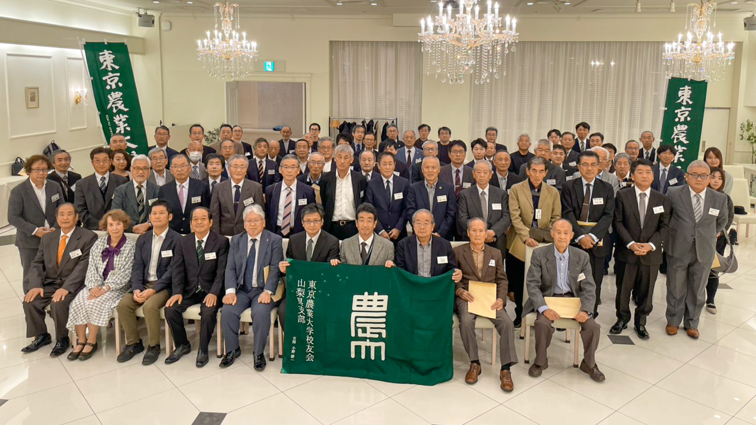 山梨県支部(海野一幸支部長)は11月15日(土)、ベルクラシック甲府で令和7年度の総会を開いた。校友会本部から岡本利隆常任理事、大学本部から矢部和弘森林総合科学科教授が来賓として出席、校友約80人が参加した。